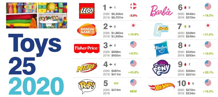 2020全球最有价值的25大玩具品牌排行榜