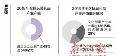 玩具产业是澄海的支柱产业,2018年,澄海区玩具礼品产业产值达546亿元,占全区工业总产值的“半壁江山”。规模一年胜一年的玩博会,正是澄海玩具不断朝着高质量发展的具体体现。而在玩博会的背后,是澄海区以打造“国际玩具名城”为目标,推动玩具礼品产业健康良性发展,并向创意产业、文化产业等高端产业转型升级的实践。