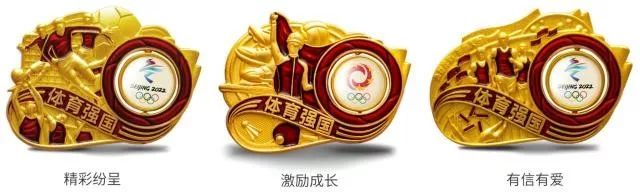 “精彩纷呈”徽章的画面选取中国足球联赛和中国职业篮球联赛画面,象征着中国职业体育的发展历程。中国体育产业正在快速发展,成为经济增长新动能。“激励成长”徽章主画面选取奥运金牌选手挥舞国旗、身穿品牌“战衣”的夺冠经典瞬间,各种体育装备、器材环绕四周,体现出中国优秀的体育企业与体育品牌经过了数十年发展历程。“有信有爱”徽章的主画面中,三名青年迎着朝阳奔跑,身后一张张飘扬的体育彩票汇成旗帜,徽章下方金色双手托起阳光,呈现出一幅“有信有爱,乐善人生”的画面。