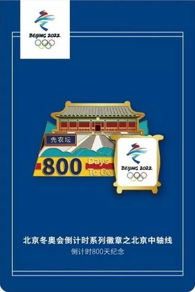 11月27日是北京冬奥会开幕式倒计时800天的日子,倒计时800天系列特许商品将在11月23日,即倒计时800天到来前的周六正式上新。北京中轴线系列将延续1000天倒计时产品风格,继续展现中轴线建筑,推出以先农坛为设计元素的徽章和马克杯。