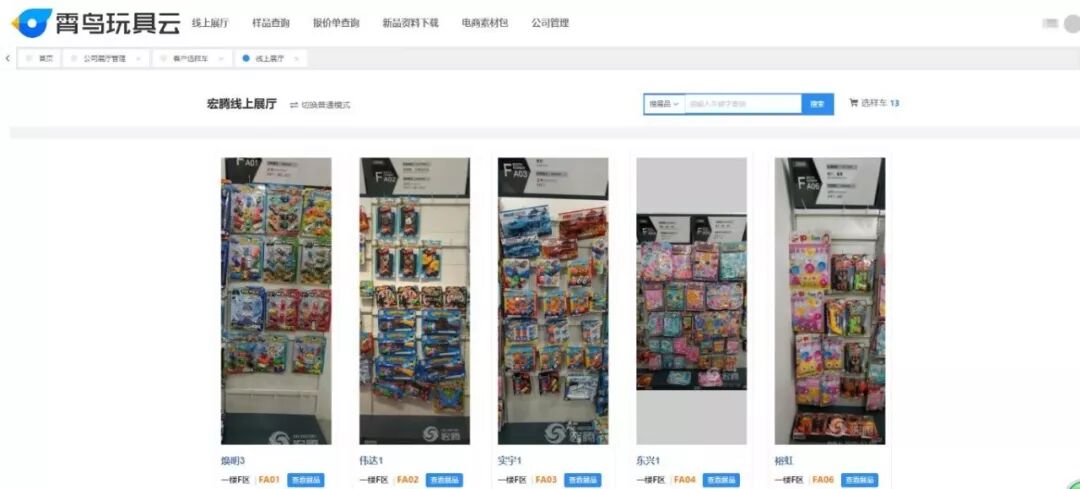 玩具工厂推出新样品时,最常用及最有效的推广方法之一就是来宏腾展厅放样品,霄鸟玩具云把线下在展8000多家工厂、超过30万只的产品搬到线上!为玩具贸易公司日常找样、发送新样品开拓客户等工作提供了非常丰富选择。并能实时查看及编辑客户在展厅制作的报价单,根据展厅样品制作报价单,根据展厅样品生成不同网站,为贸易公司在查询样品、制作报价及开拓客户的过程中提供了极大的便利。
