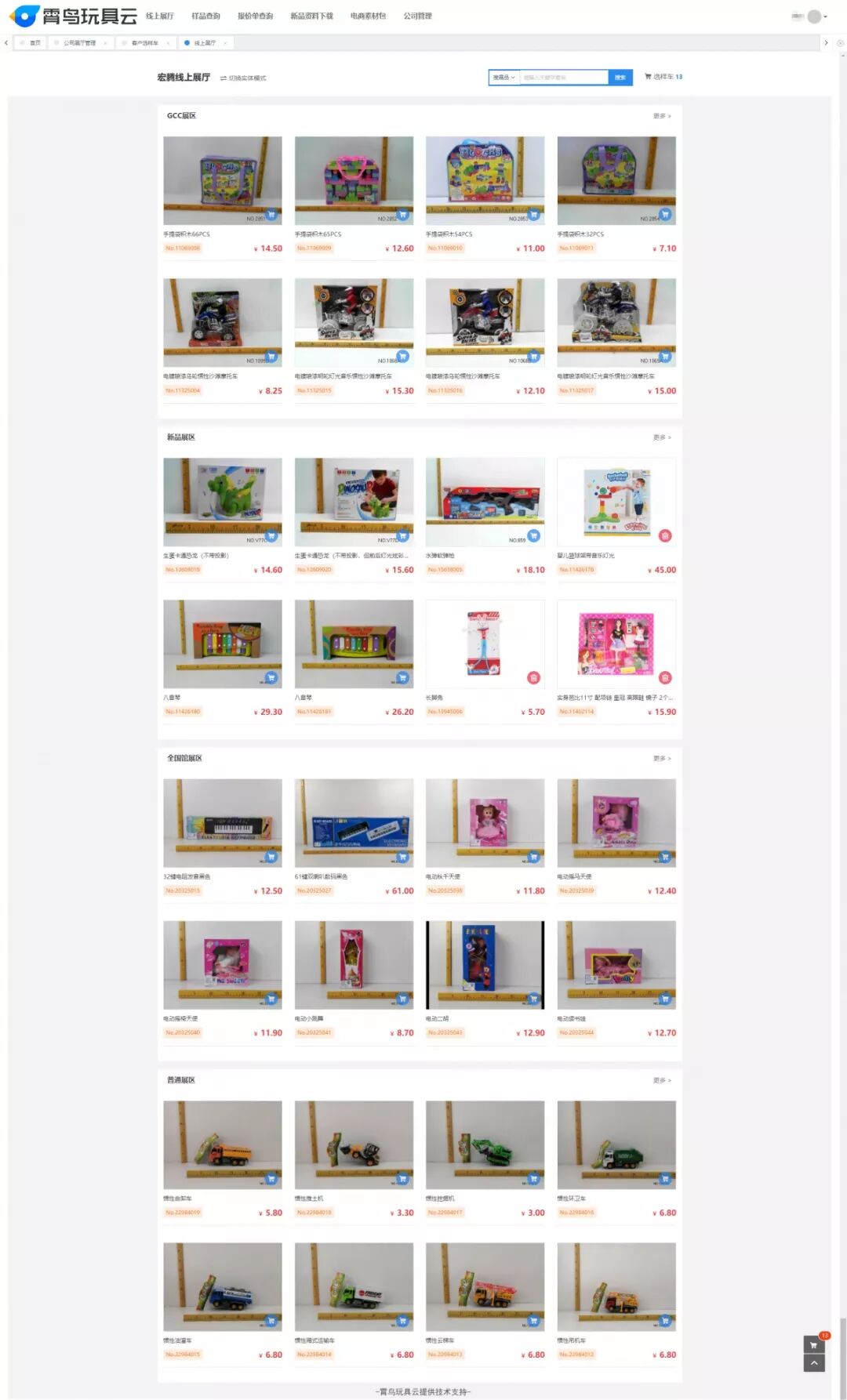 贸易公司利用现成的海量产品数据库,针对不同的客户生成不同的线上玩具展厅,并有中文、英文、西文等多国语言选择,贸易公司只需把网址发给国内外客户,客户登录后,如同亲临线下展厅,有传统产品展示、新品区、GCC展区、电商区等多种浏览模式,客户无论身处何处就能进行采购询盘,不仅节省了贸易公司系统应用成本,也获得先进技术带来的方便与快捷。