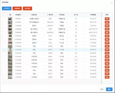 贸易公司通过查询宏腾展厅中的样品,挑选适合的样品制作独立的择价单,并可以对择样单进行打印及导出文档的操作。
