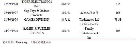 从海外玩具市场的发展看,无论美国、欧洲还是日本,头部企业都在不断通过收购和售卖资产扩大、调整自己的品牌线,拓展业务领域以提高市场占有率和竞争力,产业集中度处于较高水平。