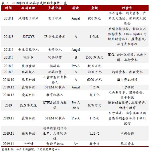 细分领域中,衍生品开发以及包括STEM、电子积木、少儿教育机器人在内的智能教学玩具开发相对更受资本关注。