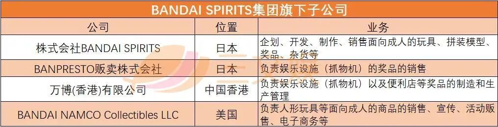 2018年2月15日,万代集团成立了新品牌——BANDAI SPIRITS。该品牌将全面展开成人玩具业务,并从BANDAI那里继承人形玩具、拼装模型等面向成人玩具的部门。而BANDAI会专注于做面向儿童的玩具。