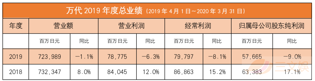归功于万代在18年4月制定的3年中期计划“CHANGE for the NEXT 挑战·成长·进化”,即便第四季度受到疫情影响,万代19年度的总业绩亦呈现出较为稳定的高水准表现。其营业额达到了7239.89亿日元(467.82亿元人民币),同比下降1.1%;营业利润为787.75亿日元(50.9亿元人民币),同比减少6.3%;净利润为576.65亿日元(37.26亿元人民币),同比下降9%。