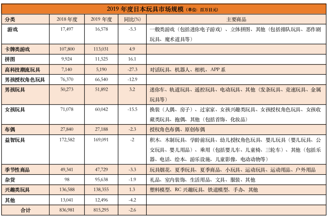 近日,日本玩具协会发布了2019年(2019年4月1日-2020年3月31日)玩具市场规模调查结果。
