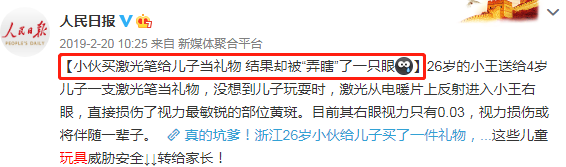 比如激光功率不合格的激光笔,其长期照射时的热效应会损伤孩子的眼睛和皮肤;