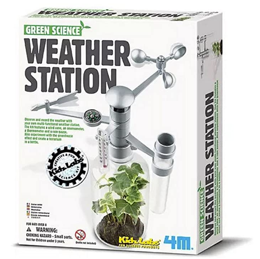 4M公司旗下品牌绿色科学推出的气象站套件,包含了一个实用的风向标、一个风速表、一个温度计和一个雨量计,以及可选的温室栽培箱。孩子可以化身气象研究员,来观察和记录天气情况,还可以研究温室效应对植物的影响,从而加深孩子对天气相关知识的学习以及环保意识的树立。
