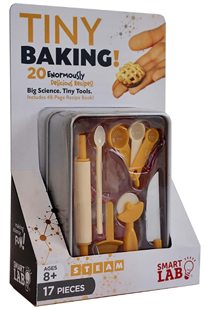 SmartLab Toys公司推出Tiny Baking系列产品,包含各种小巧的烹饪工具,如擀面杖、搅拌勺、搅拌碗、烤盘等。该公司与从事儿童订阅服务的公司Raddish合作,为其烹饪俱乐部课程提供烹饪工具。Raddish定期为其儿童会员提供特定主题的烹饪教程,包括食谱、烹饪工具、烹饪技巧、食品清单等内容,让4岁及以上的孩子体会科学和烹饪的乐趣。孩子们用非常小的工具和平底锅烤制小馅饼、蛋糕和披萨,并会学到蛋糕为什么会发起来,鸡蛋为什么会变硬,以及饼干为什么会这么香背后所蕴含的科学道理。