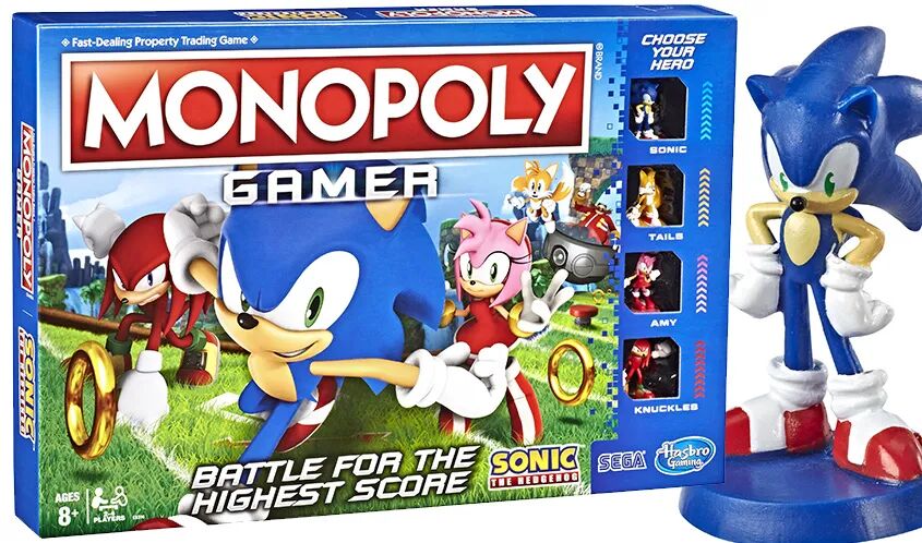 孩之宝《地产大亨刺猬索尼克联名版》,在经典的房地产交易游戏中引入了一个新的“快速死亡”环节,它的特点是只有数字2到7,像索尼克一样加速游戏进程。游戏的道具、棋盘等,均采用了电影中的元素,相关游戏规则也根据电影情节而有所变动。