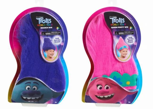 JUST PLAY公司的角色扮演假发及8英寸毛绒玩偶,彩色假发基于电影中的角色波比Poppy和布兰奇Branch,可以让孩子们玩角色扮演游戏,分蓝色和粉色两款;8英寸毛绒玩偶基于电影中的五个主要角色设计,包括波比、布兰奇和小钻石等。
