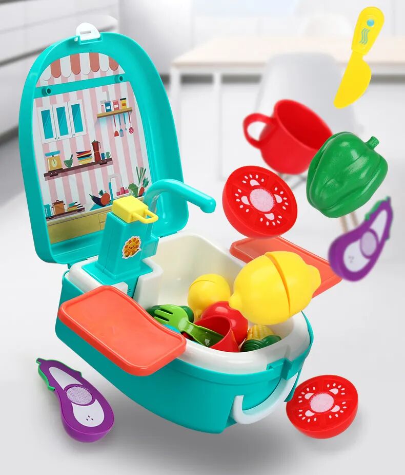炎炎夏日,正是玩水好时节,五星玩具“应景”推出了这款适合1岁以上孩子玩耍的戏水玩具,创新采用了便携的背包设计,各种蔬果、刀叉、案板等丰富配件都可收纳到背包中,兼具了便携性和收纳性。放下背包后的桌腿,即可秒变戏水桌,注入水后,打开水龙头即可电动循环出水。