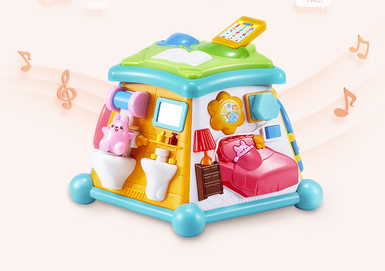 这款玩具包含6大生活场景,20种真实体验,如开锁关门、如厕洗手、独立睡觉等,触碰不同的按钮,会发出不同场景的提示语,通过仿真生活场景再现,可对幼儿进行生活习惯的培养。