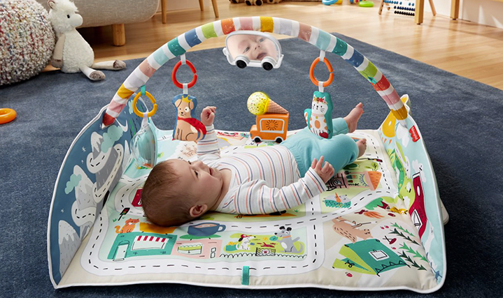 费雪的这款健身器新品,采用健身器+游戏地垫双重功能设计,去掉健身架即可变身为游戏地垫,大大提升玩具使用率,搭配城市主题及萌趣动物,增强玩耍趣味性。