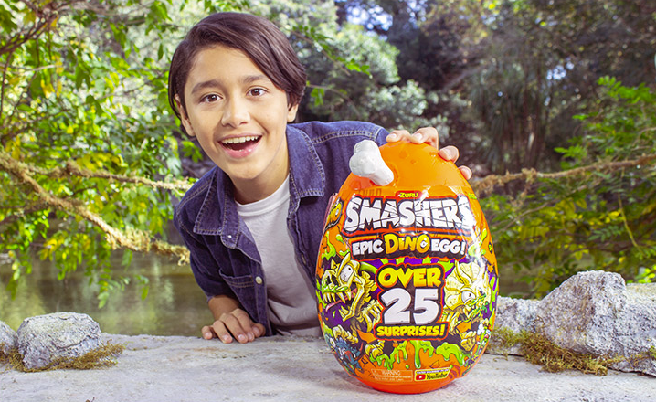 王总说到:“云波独角兽魔法蛋系列产品持续热卖后, ZURU发现,众多玩具厂商都将目光聚焦在基于女孩受众群体的盲球盲包类玩具,而以男孩为受众群体的此类玩具尚存在市场空白。于是,ZURU在2019年夏天率先推出面向男孩受众的SMASHERS(爆裂小子)恐龙考古惊喜蛋1代产品:考古侏罗纪。”